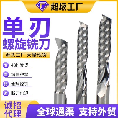 硬霸3.175單刃螺旋銑刀優(yōu)質鎢鋼雕刻機亞克力pvc單刃銑 刀數控刀具 山東
